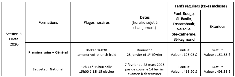 Période d’inscription : 8 décembre 2025 au 4 janvier 2026 pour les résidents de Pont-Rouge