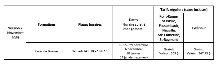 Les formations Jeunes sauveteurs et Étoile de bronze sont facultatives et ne sont pas couvertes par la subvention.