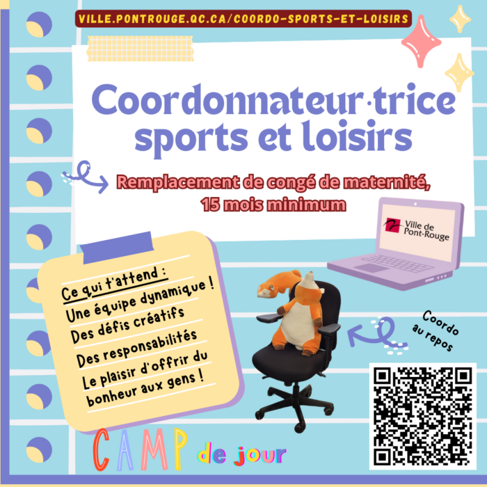 Attention : ce poste requiert que la personne effectue des heures atypiques (soir et fin de semaine d’activités). On vous avertit pour que vous ne soyez pas surpris.