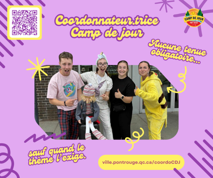 Sous l’autorité de la coordonnatrice aux loisirs, tu planifies, organises et réalises les activités du camp de jour tout en assurant la communication avec les parents.