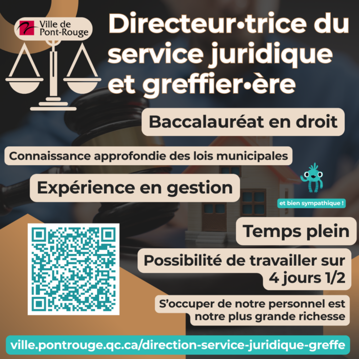 Vous assurez le suivi et l’avancement des dossiers légaux et litigieux (assurances de biens et réclamations), soumettez un avis juridique lorsque nécessaire, vous représentez la ville à la cour municipale et êtes la personne responsable de la garde des archives et de la gestion documentaire.