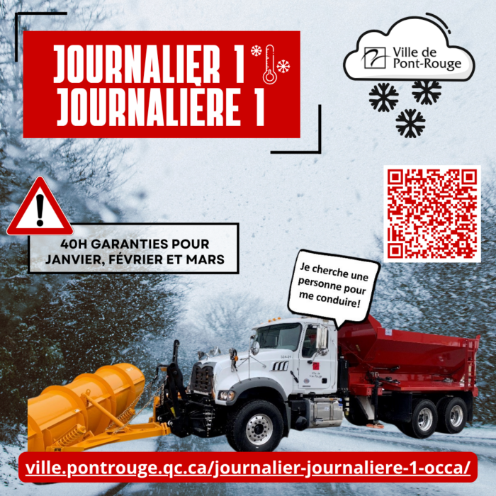 Sous l’autorité du coordonnateur aux opérations des travaux publics, vous participez activement au déneigement des routes, trottoirs et des stationnements selon le plan établi ainsi que la répartition des horaires.