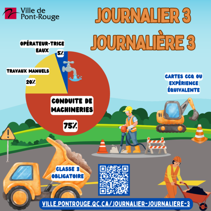 Sous l’autorité du coordonnateur aux opérations des travaux publics, vous effectuez vos tâches selon les types de travaux et les trois volets du poste :